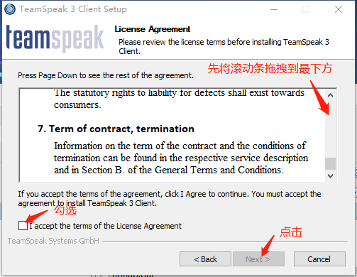 推拽滚动条至最下端,勾选对话框,点击"Next"