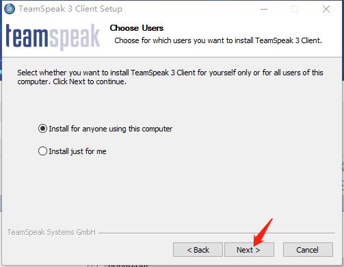 打开下载页,选择"TeamSpeak3-Client-win64-x.x.x.exe"